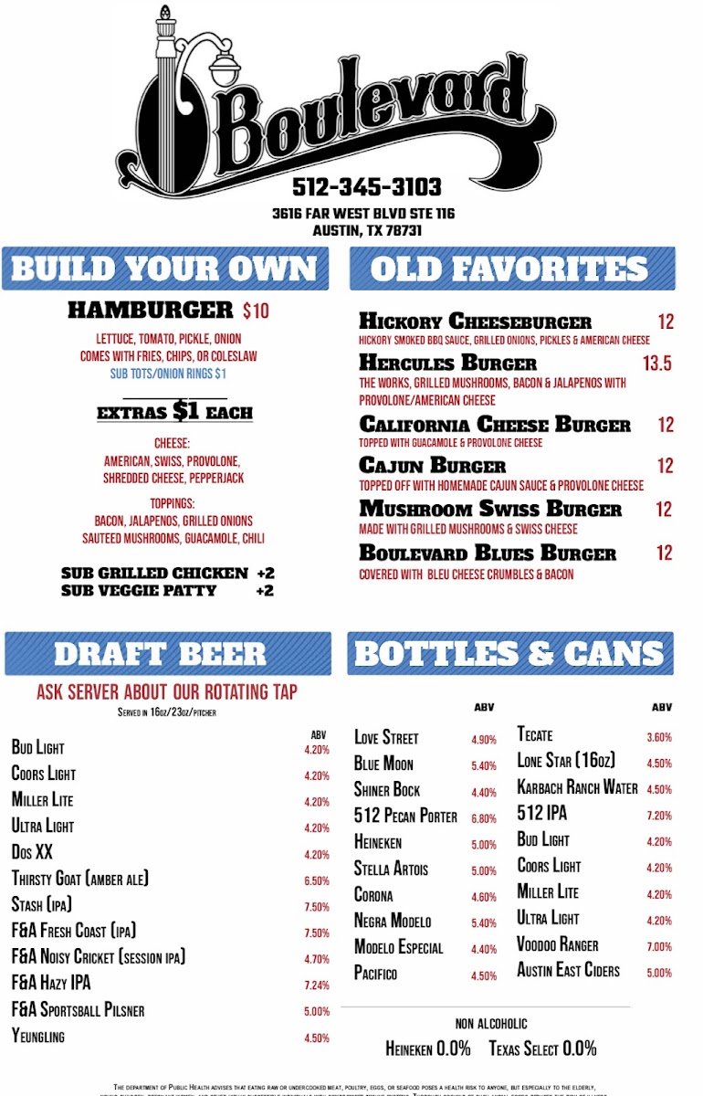Welcome to Boulevard Bar & Grill, a beloved gem nestled in Austin, Texas, perfect for locals and visitors alike. This casual eatery is renowned for its friendly atmosphere, exceptional service, and delectable bar fare.